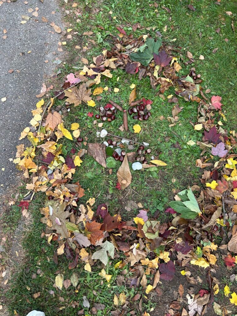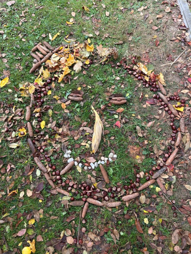 Wir, die Klasse 5a, hat gemeinsam mit der Klasse 1a wunderschöne Geisterbilder gelegt. Wir haben zum Beispiel Blätter, Äste, Kastanien und vieles mehr dafür verwendet. Vorab haben wir uns alle im Klassenzimmer der 1a getroffen. Dort hat Frau Stadlbauer das Thema mit uns besprochen. Danach sind wir in den Pausenhof gegangen und haben unserer Fantasie freien Lauf gelassen.